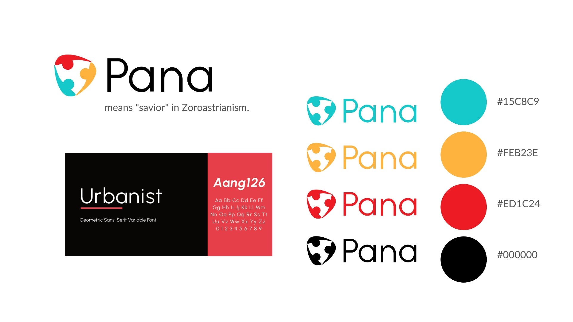 The brand; name, logo, colors, typography was designed to hold all of this. Pana means "savior" in Zoroastrianism. The logo is three people, forming a shield. Nothing was arbitrary.