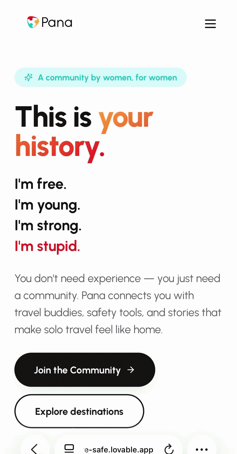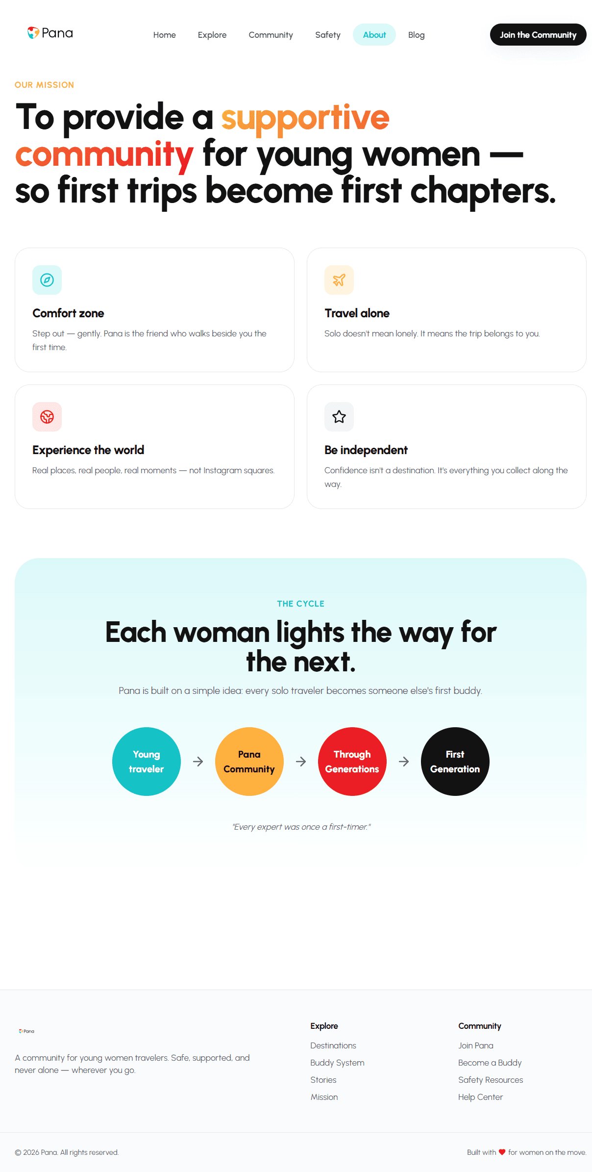 Safety and independence are not opposites. The right service design can hold both at the same time. That's what Pana tries to do — not remove the fear of traveling alone, but give young women the community and confidence to go anyway.