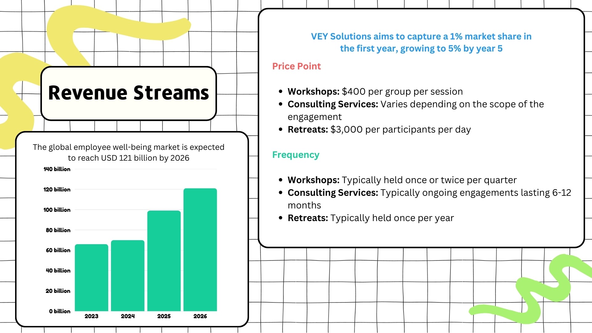 Vey is a conceptual business model designed to revolutionize the way companies approach employee well-being. The project offers a holistic range of services, including workshops, retreats, and consulting, focused on fostering healthier, more engaged, and productive workplaces. By addressing both individual and organizational needs, Vey promotes long-term well-being and improved performance through tailored experiences and expert guidance.