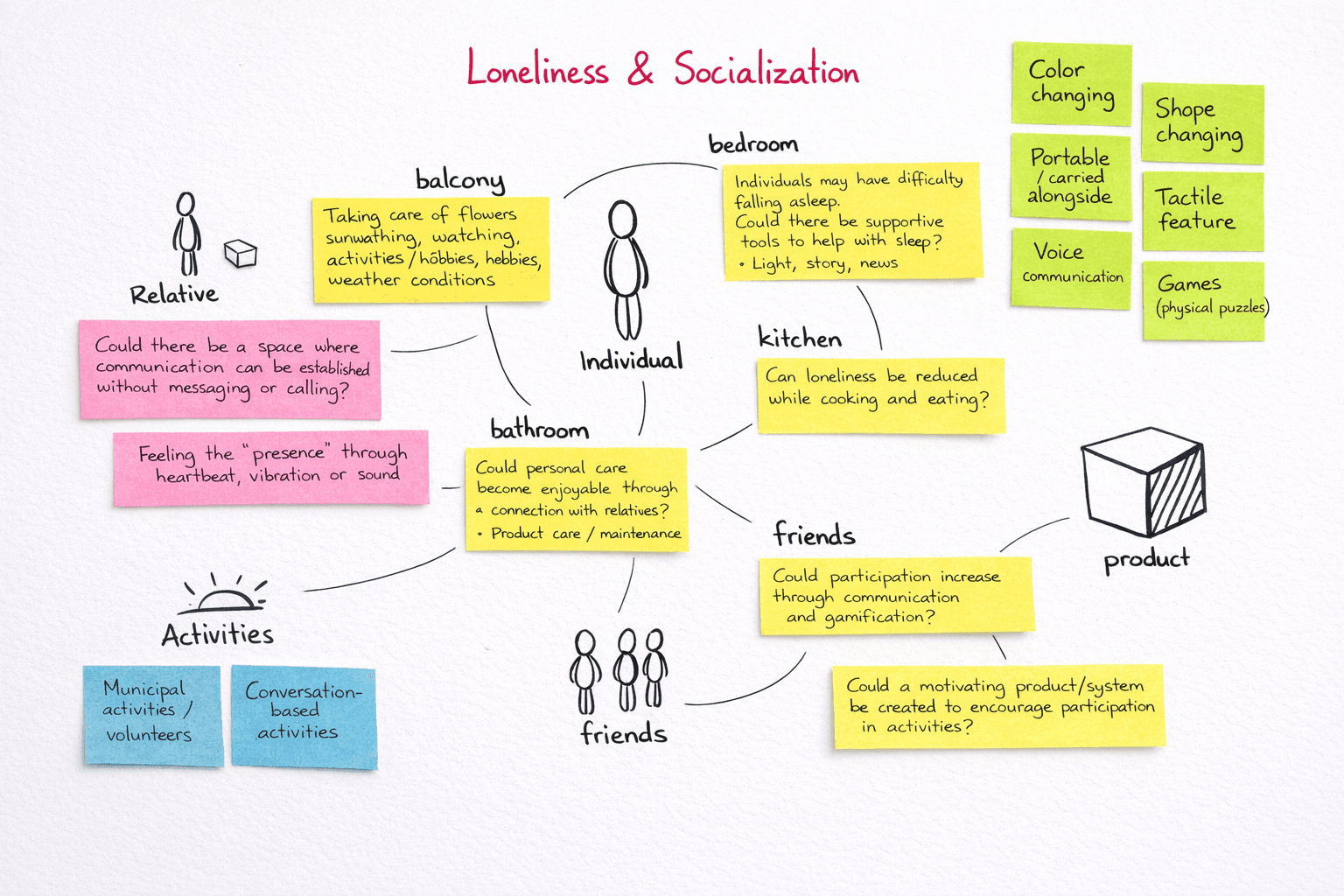 What I don't see reflected in the product is the most important thing I actually found in the research. The problem wasn't a missing device. It was broken social connection touchpoints. It was the design of communication itself between elderly people and the people around them. A robot in the living room doesn't fix the fact that nobody initiates contact anymore.