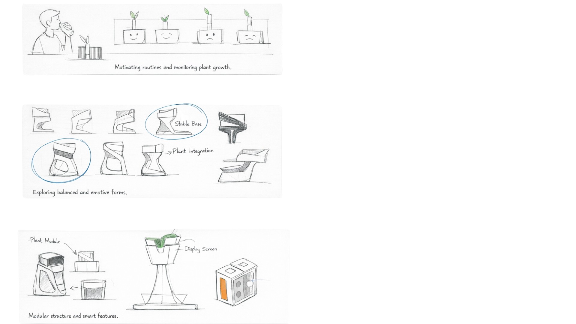 The core idea was simple: the more active and connected the user was, the more alive Ginkgo would become. If they went for a walk, called a friend, or tended to the small plant that came with the device, Ginkgo would respond visibly with warmth and color. If they became isolated and inactive, Ginkgo would show that too.