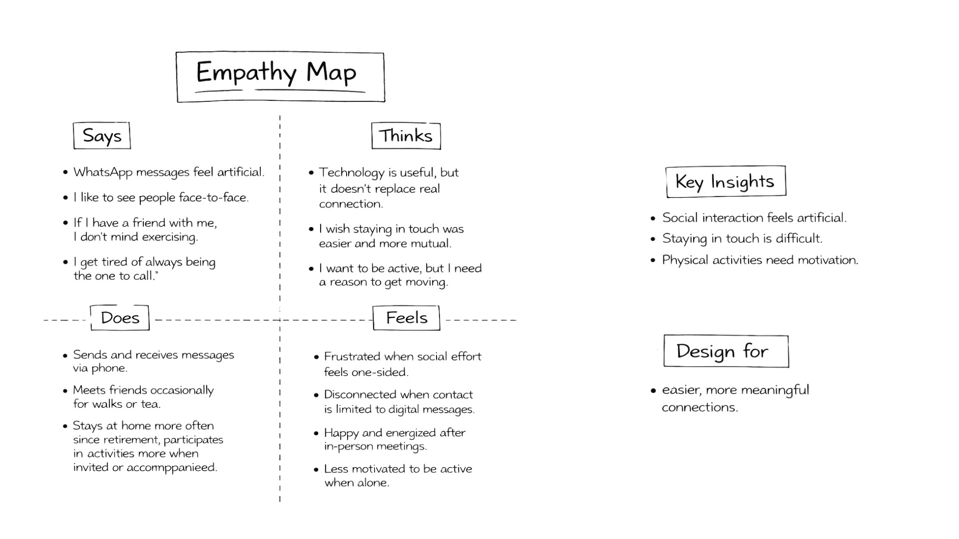 That gap between what the research revealed and what the product addressed is something I carry with me. It's why I moved toward service design. Because the real intervention needed wasn't a product. It was a systemic rethinking of how we design for human connection across age and distance.