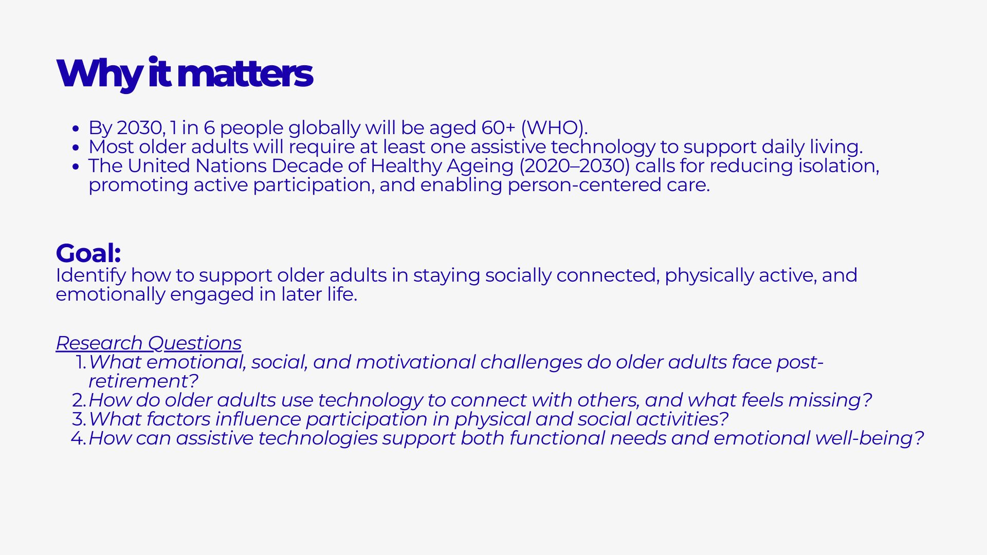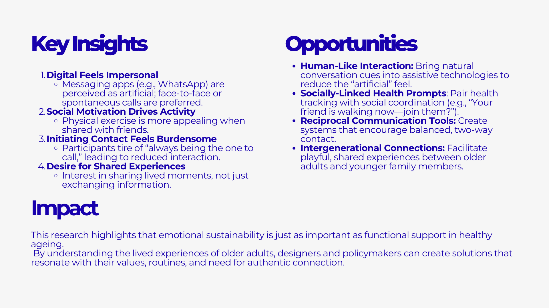 1.Understanding Social & Emotional Needs in Healthy Active Ageing : exploring how older adults can stay active, connected, and supported in their daily lives.