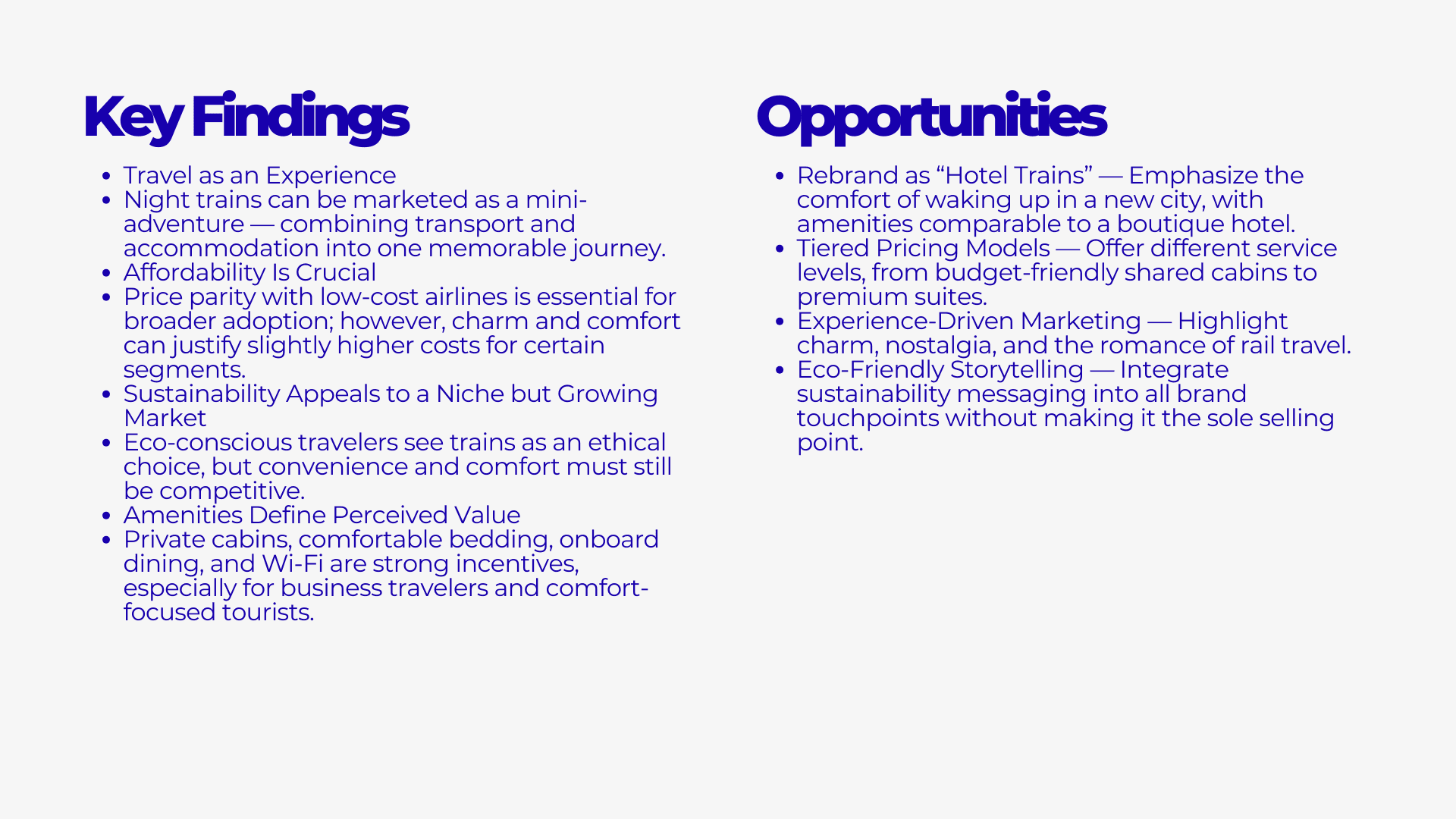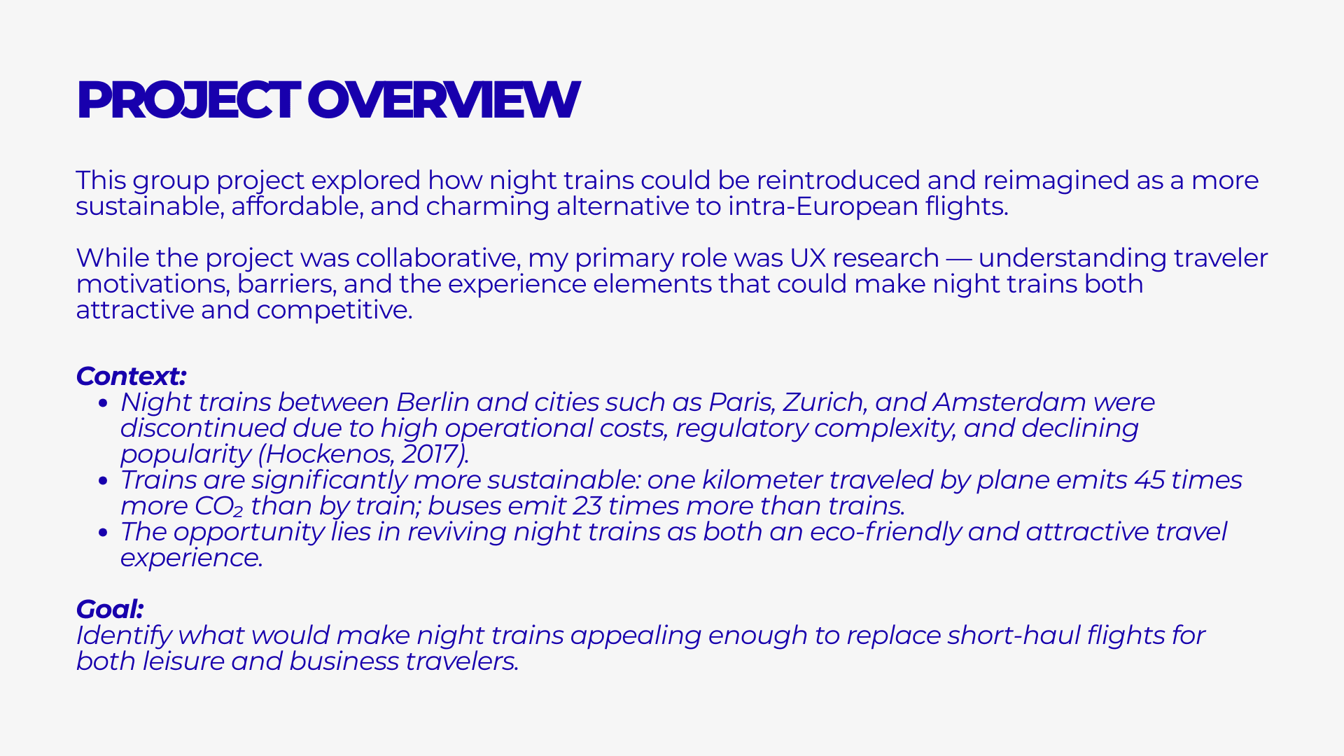 2.Reviving Night Trains as an Affordable & Charming Travel Experience : investigating how night trains could become a sustainable and appealing alternative to short-haul flights.