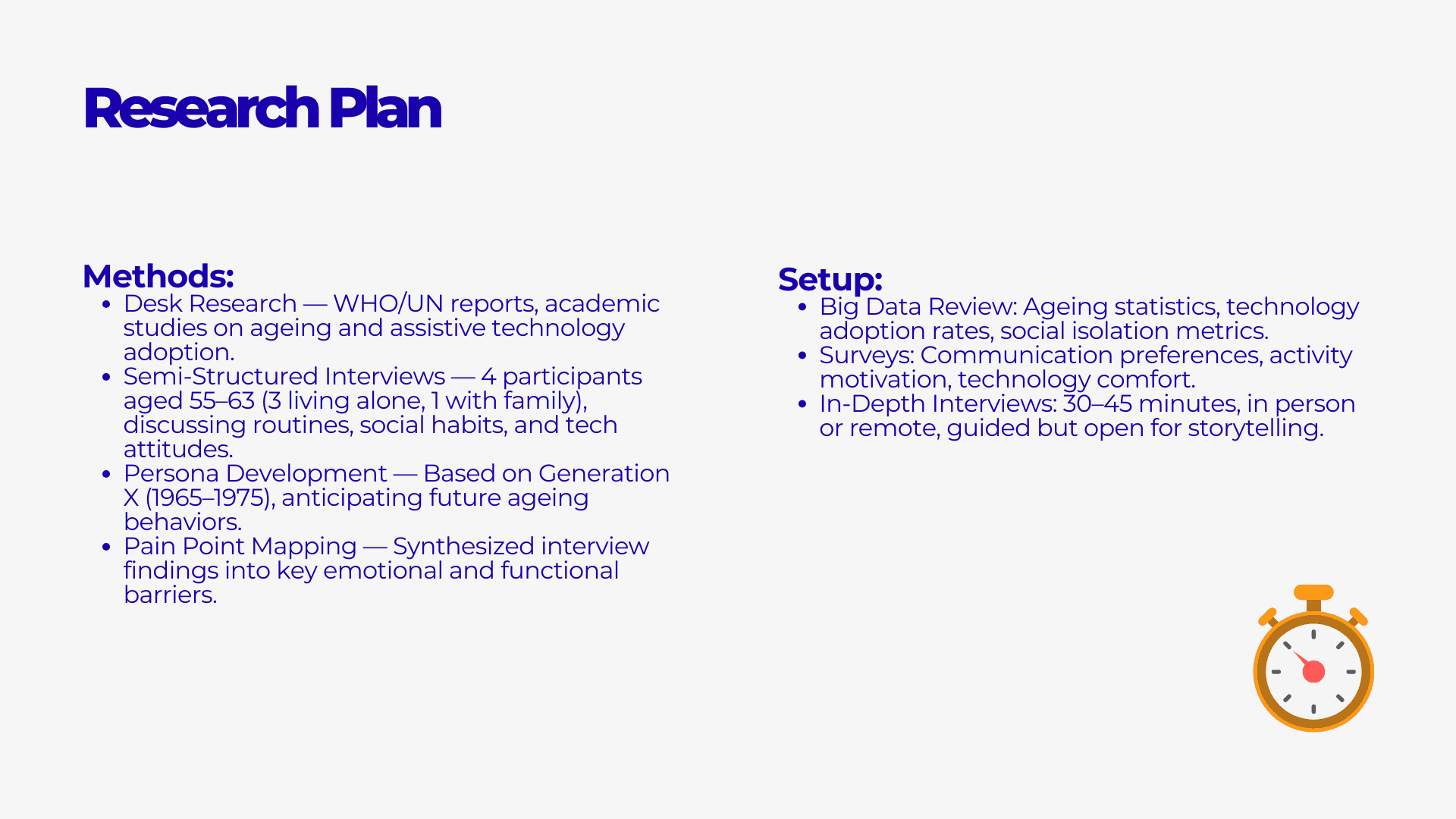 The portfolio demonstrates my skills in user interviews, surveys, usability testing, persona creation, empathy mapping, and data analysis, showcasing how research can guide meaningful and human-centered design solutions.
